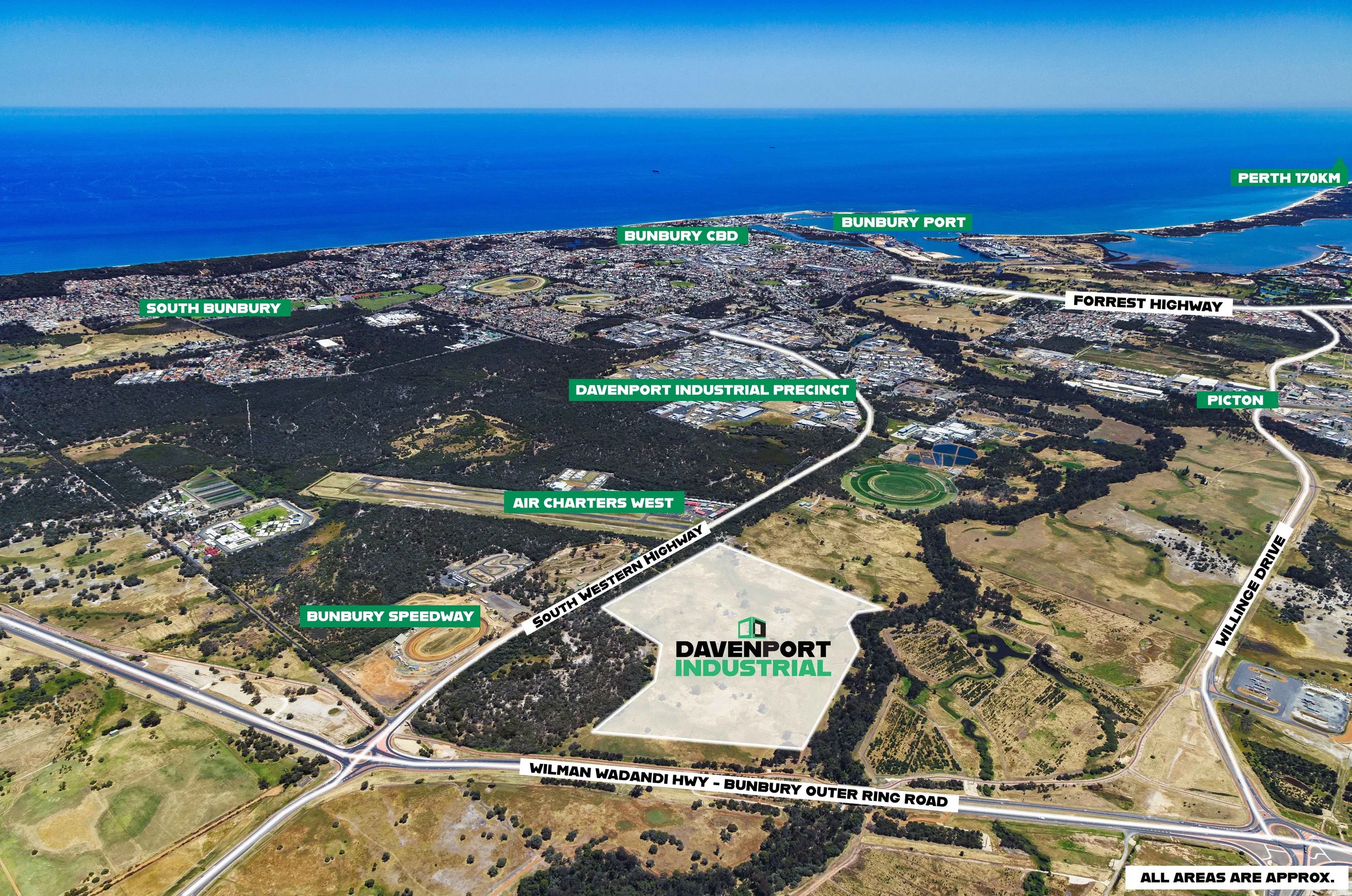 Just 10 minutes from Bunbury CBD, Davenport offers prime industrial space with direct highway access, heavy vehicle-friendly roads, and strong links to regional centres and the Port of Bunbury. Perfect for logistics, construction, transport, and trade businesses looking to grow.